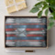A seamless Art Deco–inspired pattern resembling stained glass panels, featuring bold vertical geometry in patriotic red, white, and blue. Textured glass effects, crisp black leading, and symmetrical diamond accents give the design a timeless, architectural feel.