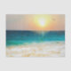 Este armário inspirador, areia praia mar e céu brilhando por sol cria um tranquilo relaxante decor do humor de verão. Fotografia do oceano de horizonte temporal de praia tropical panorâmica, cheia de belos ouros vibrantes e cor laranja do pôr do sol, azul e turquesa da água do mar, com gaivota e faíscas de água.