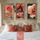 Luxe Papoila Retrato Bouffant Couture, Coral red, beige e preto, papel de tecidos de Decoupage de arte digital. Nota. Para projetos de correspondência, visite meu compro para ver as versões complementares deste conjunto de 3 ilustradas em minhas exibições de produtos.