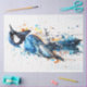 Azure Whisper" Esta peça captura o delicado sussurro da pega contra um pano de fundo de azuis profundos e laranjas macios, que lembra um pôr do sol sereno. Papéis de dissociação criados pelos RHDs para mobiliário, cadeiras, canvas, poster, até mesmo decoração doméstica.