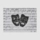 O talento artístico vem em muitas formas e quando se unem é espetacular. As máscaras de comédia e tragédia no teatro grego estão sobre uma folha de música