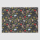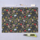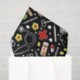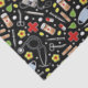 Tecido de presente de aniversário ou decoração de festas com temas médicos e padrão de flores em fundo negro.