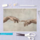 A Criação de Adão pela Pintura Masternote de Michelangelo - A Criação de Adão é uma das pinturas mais famosas do mundo, criada pelo mestre Michelangelo em Roma. A Criação de Adão é um fresco clássico que Michelangelo pintou no Vaticano de Roma, na Capela Sistina, em 1511-1512. A Criação de Adão impressão em nosso presente é uma porção do quadro fresco, mostrando toda a criação do Homem no Livro Bíblico da Gênesis, onde Deus (à direita) dá vida ao primeiro homem, Adam (à esquerda). A pintura mostra o quase toque das mãos, entre Deus e Adão. A imagem é uma pintura crônica do Renascimento. Michelangelo mostra Deus como um velho homem de cabelos brancos e barbudos brancos, vestindo uma longa roupa branca. Tanto Deus como Adão têm os braços estendidos um ao outro, como se Deus estivesse gerando uma faísca de vida no novo homem Adão. A pintura de Michelangeo mostra a semelhança do Homem com Deus, mostrando que Deus criou os humanos em sua própria imagem.