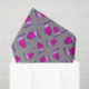 Este papel de tecido festivo apresenta mitenes de aquarela cor rosa sobre um fundo de pontos em cinzas.