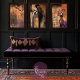Moody Boho Bird & Birdcage Patchwork Art, Violet Purple e Cayenne Orange, papel de tecido de dissociação. Nota. Para projetos de correspondência, visite meu compro para ver as versões complementares deste conjunto de 3 ilustradas em minhas exibições de produtos.