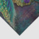 "Tecido de desacoplamento Dourado de Pavão Azul Roxo e Elegante para quebra ou desacoplamento de presentes." Uma vintage de estilo fantasioso e divertido e uma design de arte moderna com pavões elegantes em tons negros sobre um fundo lamacento e cor de pavão, modelado de fundo com penas pavão douradas, flores, pano de fundo da estrela cintilante. Na moda elegante para uma divertida e maximalista decoração de casa ou design de embrulho de presente. Arte projetada graficamente por uma artista e designer internacionalmente licenciada, Audrey Jeanne Roberts. Direitos autorais.