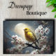 Transforme os móveis do dia a dia em vitrines poéticas com este design amarelo-etéreo. Essa versão oferece uma atmosfera luoniosa mais dramática do que suas peças companheiras, com a brilhante plumagem amarela da ave criando um ponto focal impressionante contra o fundo azul-cinza. As cerejeiras florescem quase luminescentes à luz da lua, suas delicadas pétalas renderizadas com clareza cristalina. A composição cria um equilíbrio perfeito entre a presença brilhante e esperançosa da ave e o humor sonhador e contemplativo do crepúsculo. Emparelhamento de cores perfeito: azul-claro e amarelo-limão cinzas de prata-lua e branco-pérola e nádegas Misty blue e cherry-pink Carvão e elementos do Design de marfim que cativam: efeito halo-lua dramático que produz pássaros translúcidos Profundidade atmosférica Difusão de luz flexível Transformações do Mobiliário Ideal: Caixas de mesa Pequenas inspiradas Painéis decorativos para paredes Keepsasaes para peitos Acessórios de varejo