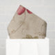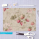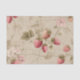 Morangos rosa e flores suaves pairam sobre um fundo de pergaminho quente com escrita antiga desvanecida. Os tons verdes suaves e neutros cremosos dão a este design um sentimento refinado de jardim de campo com um acabamento suavemente envelhecido.