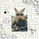 A imagem mostra um coelho vestido com uma roupa robusta e apocalíptica postada, andando de moto. O coelho está vestindo uma jaqueta de couro preto com visto e rasgos visíveis, e tem cabelos longos e selvagens. Em especial, o coelho tem orelhas grandes e peludas em cima da cabeça, acrescentando um elemento fantástico à cena. O fundo parece ser uma paisagem estéril, semelhante ao deserto, reforçando o tema apocalíptico posto. Esta imagem é interessante devido à sua combinação de elementos distópicos e fantásticos, criando um visual único e surpreendente. Roupa apocalíptica postada, motocicleta robusta, jaqueta de couro preto, roupas vestidas e rasgadas, cabelos selvagens longos, ouvidos animais peludos, elementos de fantasia, paisagem desértica árida, tema distópico, visual único, RHDesines de dois pintos.