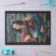 Lindo guitarra.. Linda menina tocando violão clássico.Pintura a óleo vibrante em cores vermelha, azul, preta e marrom na canvas .1975 por Alessandro Lumini.