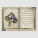 Livro aberto, quente, rústico e encantador de natais vintages de partituras com pequeno buquê de violetas e mensagens de Melhores Desejos em fundo de sépia angustiado com violetas e notas musicais antigas. Adequado para o artesanato de Natal e para a dissociação.