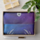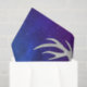 Estas folhas de papel tecidular têm uma cabeça branca mística de cervo com grandes galhadas, olhos azuis e uma coroa de três rosas azuis bonito sobre sua cabeça, sobre um fundo céu de blues e púrpura com pequenas estrelas brancas.
