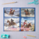 Esta design de Natal divertida mostra o Santo Nicholas e outros cowboys andando na neve.