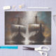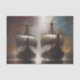 Decoupage de Navios Vikingues Gêmeos pela Decoupage_Boutique retrata dois navios poderosos avançando lado a lado através da névoa e da luz tempestuosa. As proas esculpidas e as velas inchadas refletem a unidade e a força dos marinheiros nórdicos enquanto eles enfrentavam horizontes desconhecidos. Flechas atravessam o céu, adicionando urgência e perigo a essa poderosa cena marítima pintada com tons sombrios de azul-verde, bronze e luz de fogo.