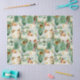 It has a repeating pattern with a soft, faded color palette, mostly in shades of mint green, white, and muted reds/golds.
