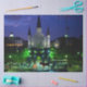 Nova Orleans, Louisiana à noite com carruagems desenhadas por cavalos