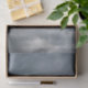 Nuvens negras estão se separando no primeiro plano desta fotografia colorida. As camadas de nuvem tornam-se tons mais leves de cinzas mais profundas na imagem. As pistas do céu azul claro são visíveis para além das nuvens de tempestade à medida que o tempo começa a escorrer. Fotografia digital a cores. Copyright © Claire E. Skinner. Todos os direitos reservados.