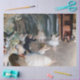 Edgar Degas (19 de julho de 1834 - 27 de setembro de 1917) era um artista francês famoso pelos seus desenhos pastel e pinturas petrolíferas de bailarinas. Degas também produziu esculturas, impressões e desenhos de bronze. Degas é identificado especialmente com o tema da dança, mais da metade de suas obras retrata dançarinos. Embora Degas seja considerado um dos fundadores do Impressionismo, rejeitou o termo, preferindo ser chamado de realista, e não pintou ao ar livre como muitos Impressionistas. Degas foi um excelente relator de parecer e, em particular, magistralmente em representação do movimento, como se pode ver na sua representação de dançarinas e nudes de mulheres balneares. Além dos dançarinos balés e das mulheres balneares, Degas pintou cavalos de corrida e jóquios de corrida, além de retratos. Seus retratos são notáveis pela sua complexidade psicológica e pelo retrato do isolamento humano. Degas queria, no início de sua carreira, ser pintor de história, um chamado pelo qual foi bem preparado por seu rigoroso treinamento acadêmico e por seu estreito estudo da arte clássica. No início dos anos 1930, mudou de curso e, trazendo os métodos tradicionais de um pintor de história para arcar com assuntos contemporâneos, tornou-se pintor clássico da vida moderna. Citação: Wikipedia