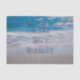 'The Beach, This'What's Not More', frase inspiradora, papel de tecido de dissociação do artesanato. Embalagem de presente náutica do litoral litoral branco azul-ondas do oceano oceânico azul. Bela água e praia arenosa tropical inspiraram a cena das férias de verão. Chic, Trendy, moderno, elegante, design de viagem legal. A apresentação no empacotamento pode ser personalizada por estilo de fonte, tamanho ou letra ou removida se desejar. Imagem copyright Marg Seregelyi Fotografia.