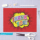 Obrigado A ilustração do estilo da banda desenhada com design de texto em cores brilhantes. É possível mudar a cor de fundo e adicionar uma diferente à design com sua escolha.