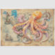 Octopus no mapa de safra com navio, bússola, sereia e roda de naves no design de 18 lb para design de papel tissue para desacoplamento 20x30
