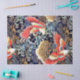 Design floral elaborado a partir de antigo padrão japonês com guindastes e flores. Elaboração e composição digitais por parte da Búlgara Lumini