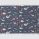 Papel De Seda Padrão Azul de Animais do Mar do Oceano de Aquarel
