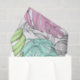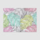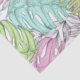 Um bonito pastel, aquarela, parece impressão de folha de palma. Em cores de azul-aqua, rosa-coral e amarelo-limão em fundo branco. Luz, areia e elegante.