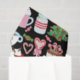 Este papel tecidular bonito é versátil e pode ser usado para dar presentes ou projetos de arte e artesanato. A design apresenta árvores de Natal, cacau quente, canas doces, doces e bolos sobre fundo preto.
