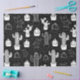 Papel De Seda Padrão de Doodle do Cactus Preto e Branco