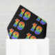 Este design de papel de tecido alegre, colorido e vibrante apresenta o número "19" tendo um padrão multicolorido de gradiente de espectro, em um fundo preto colorido. Este tipo de papel pode ser usado no empacotamento de presentes ou de presentes no décimo nono aniversário de alguém, ou talvez no décimo nono aniversário de casamento de um casal, ou em qualquer outro evento do 19º. [~Z0000331]