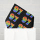 Este design de papel de tecido alegre, colorido e vibrante apresenta o número "97" com um padrão multicolorido de gradiente de espectro, num fundo preto colorido. Papel tecidular como este pode ser usado no empacotamento de presentes ou presentes sendo dados para o nonagésimo sétimo aniversário de alguém, ou talvez para o nonagésimo sétimo aniversário de casamento de um casal, ou algum outro evento do 97º aniversário. [~Z0000331]