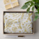 Flores de ouro elegantes e deixa um padrão uniforme em fundo branco.