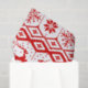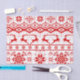 Um lindo padrão de criação de renas vermelho de malha natalícia sobre fundo branco. Modelo de papel tissue personalizável