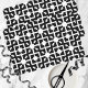 Design de papel tecidular moderno com um padrão mosaico feito de formas brancas geométricas sobre fundo preto. Textura com efeito de ilusão óptica.
