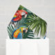 papagaio-papagaio tropical embrulhando papel com folhas de palmeiras, papagaio vermelho, papagaio azul e amarelo brilhante plástico exótico colorido