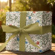 O padrão botânico de artes e Artesanatos no sábio, vermelho e azul inspirado por William Morris e usando muitos elementos que ele usou como papoilas.