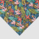 Flores e folhas tropicais cor-de-rosa, azul, verde e muitas outras cores se combinam para fazer um belo impressão da selva neste papel de tecido para todas as ocasiões.