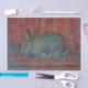 Papel de tecido para a dissociação do artesanato de arte impresso com de pintura de coelho branco-escroto vermelho-rústico de coelho da Páscoa. Imagem copyright Marg Seregelyi Fotografia.