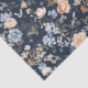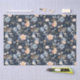 Este design apresenta uma ilustração em aquarela de flores rosa claro de pêssego e azul e um pássaro tropical.