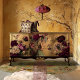 Papel De Seda Pássaro Humming & Floral, Borgonha e fundo Dourado
