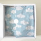 Design de impressão de ilustração abstrato de nuvens brancas e cor-de-rosa branco e pequenas nuvens brancas. Tema simples das nuvens minimalistas para quarto de infância, quarto de criança, adolescente. Cumulus altocumus fluffy nuvens de céu branco e pastel de bebê rosa. Ilustração de nuvens de artérias para crianças, nuvens de decoração de berçários, nuvens de camas pastel. Padrão de nuvens em cor rosa pastel.