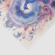 Um fundo pálido arma um pavão rodeado por delicadas flores rosa e azuis.