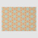 O padrão apresenta um design simétrico e repetente com um toque de vintage. Consiste em formas em três cores principais: coral, verde-menta-claro e amarelo-claro. As formas dos corais se assemelham a pétalas ou diamantes arredondados, criando um efeito semelhante a uma estrela onde se intersetam. As formas verdes da menta formam padrões semelhantes a estrelas no centro e entre as formas de coral. O amarelo pálido preenche o fundo, fornecendo um contraste suave com as outras cores. O efeito global é um padrão geométrico harmonioso e atraente para os olhos, com uma estética retrorreflectora.