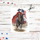 Uma cena rural corajosa e espiritual com um vaqueiro andando a cavalo marrom diante de um clássico celeiro vermelho. O cavaleiro veste um chapéu preto de vaqueiro, jaqueta vermelha e bandana vermelha, mas o detalhe de destaque é a camisa temática de esqueleto — adicionando uma torção lúdica e elegante ao traje tradicional ocidental. O cavalo está completamente selado e alerta, enquanto uma bandeira americana se agita orgulhosamente ao fundo, reforçando o cenário patriótico. Perfeito para designs rústicos, góticos ou inspirados na Americana, esta imagem combina a cultura clássica de cowboy com um toque de floco rebelde. esqueleto de cowboy blusa arte de cavalo, design do estábulo ocidental patriótico, imagem de cavaleiro vermelho rústico, decor da Americana do cowboy gótico, gráfico de artesanato do país com esqueleto, chapéu preto de bandana vermelho, trabalho de arte do orgulho rural de cavalo, bandeira americana impressão ao estilo ocidental, pintura de clipe rústico do cowboy sujo, arquivo de ilustração do templo do país rebelde.