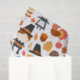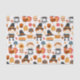 Papel tecidular com um padrão sazonal de Ação de Graças. Apresentando peregrinos brancos, perus, torta de abóbora e outros diversos elementos temáticos do outono.