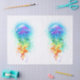 Água-viva grande, iridescente, desenhada artisticamente, brilhante, com longos tentáculos em branco, pintados sobre fundo de cor aquosa multicolor. Água-viva.