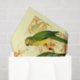 Ilustração com periquitos verdes em uma floresta.