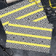 Tendência e design de papel de tecidos único com faixas de padrão horizontal preto e branco em arte de operações em um fundo amarelo totalmente personalizável.