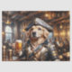 A golden retriever dressed as a cheerful pirate enjoying a pint in a cozy tavern. This playful and detailed tissue is great for fantasy lovers and humorous decoupage pieces.